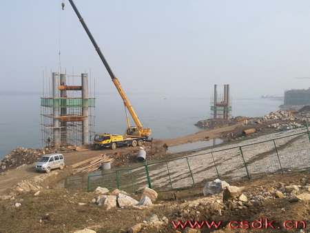 長(zhǎng)江27米的水位,樁接頭仍在水中
